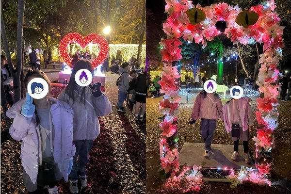 夜のライトアップの中で撮る写真は、昼とはまた違った雰囲気でとてもかわいかったです。